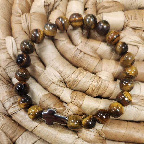 Boost your style with our Adam Bracelet! This unisex accessory features a polished tiger eye bead and a sleek black or silver stainless steel cross.? Wear alone. or pair with our Elijah or Cameron Bracelet.?